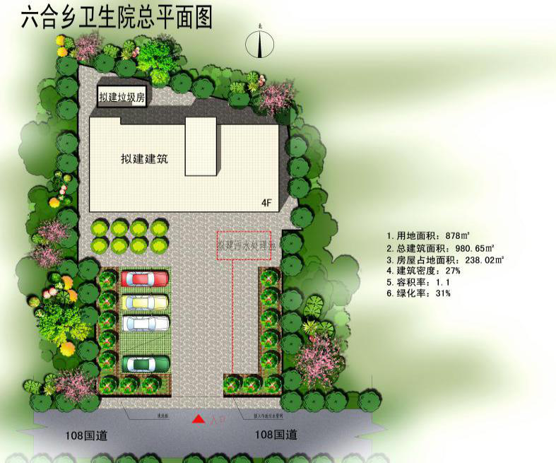 六合乡卫生院位于星星村9组,占地面积3亩。服务人口约1.2万人,辐射人口接近2万人,新农合参合率99.5%。原有业务用房532平方米,建于2006年,为三层、砖混结构建筑;卫生院编制床位15张,在编人员15人,2012年门急诊8125人次,健康体检9658人次,慢性病管理196人,年总收益105.8万元。