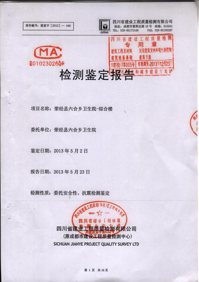 六合乡卫生院综合楼在“4﹒20”芦山强烈地震中受损,房屋安全性鉴定为C级,不满足抗震设防等级。另外,仪器设备损坏6台。