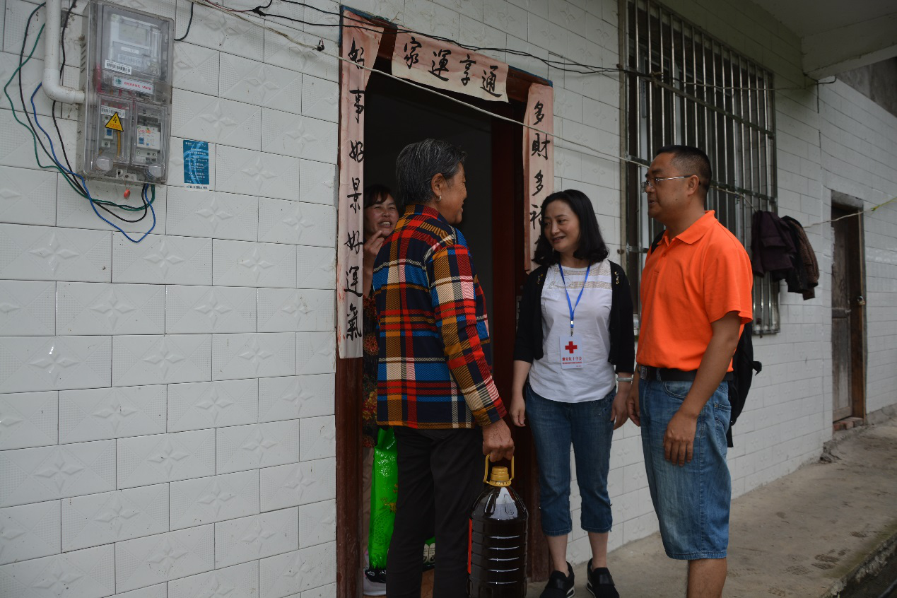 随后,市红会一行前往联系贫困户家中,为他们送去了米、油等慰问品,与他们交心谈心,了解他们的生产生活近况,鼓励他们利用现行的好政策脱贫致富。