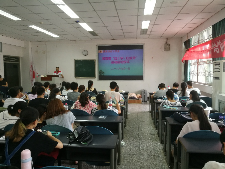 7月1日,雅安市红十字会在四川农业大学举办2018年“红十字·红丝带”活动启动仪式,市区红十字会、川农大志愿者参加。
